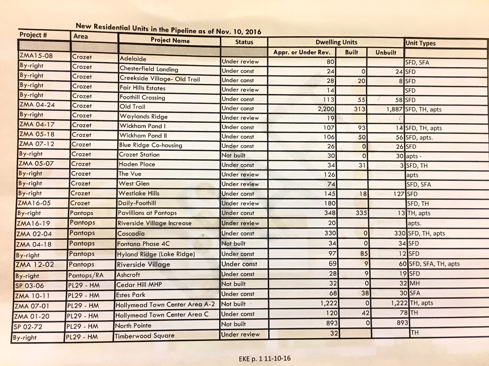 - Pipeline of homes in Crozet